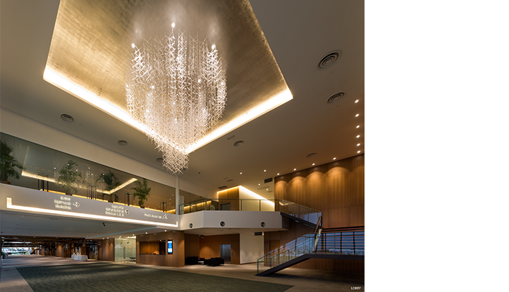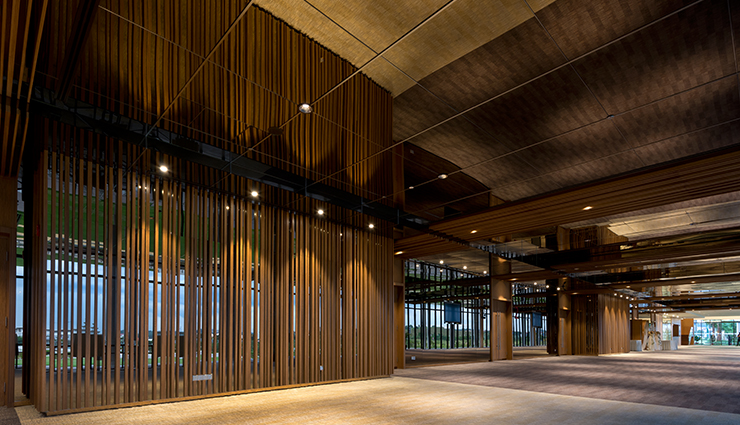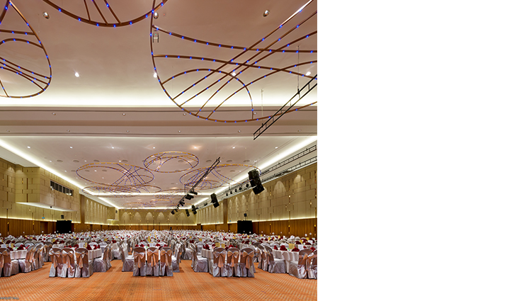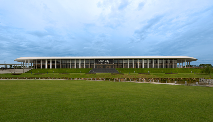 The GBI Certified Green Building houses a restaurant and a grand ballroom capable of accommodating 200 tables in a banquet layout on the ground floor, while the upper floor consists of 8 smaller function rooms. The enclosed ballrooms and function rooms are accessed via the large pre-function space in the form of an enclosed verandah that overlooks the central park and lake. A central service corridor services all the ballrooms and function spaces from the rear.